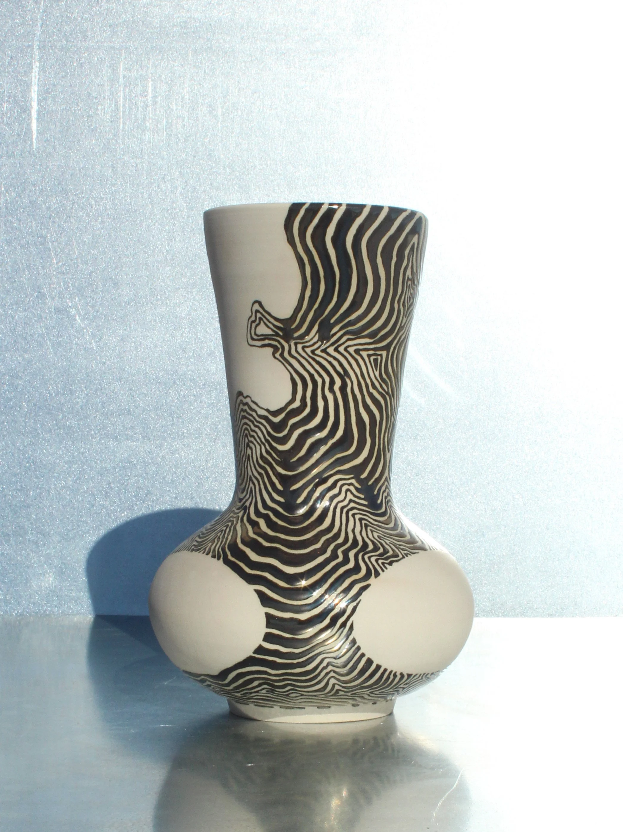 Inspired by the phases of the moon, the three faces of the Window Vase depict a different intensity of metallic glaze lines.
